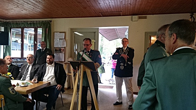 der Veranstaltung noch amtierende Bezirkskönig und Gastgeber der Veranstaltung Peter Nonn. Er nämlich stiftete dem Bezirksverband ein neues Bezirkswappen. Dieses Wappen wird nun zunächst für ein Jahr